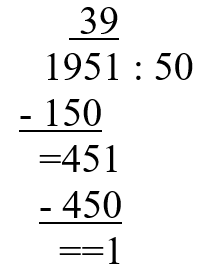 W tym zadaniu musisz wykonać dzielenie 1951 ∶ 50 z resztą i sprawdzenie.