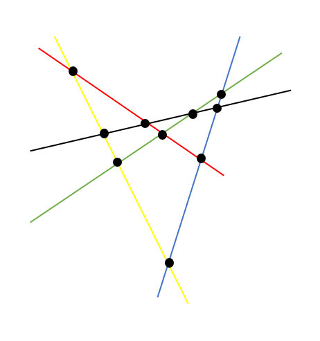 Proste narysuj tak, by przecinały możliwie najwięcej innych prostych, a następnie oznacz przecięcia punktami.
