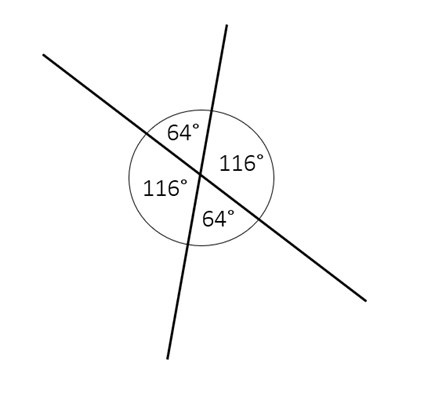Gry dwie proste przecinają się to powstają 2 pary kątów wierzchołkowych, czyli takich kątów, które leżą naprzeciw siebie i mają tę samą miarę.