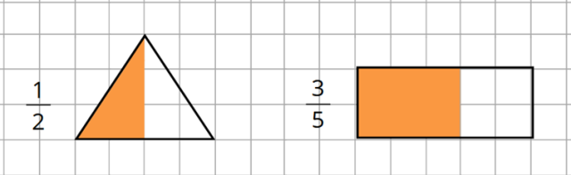 W tym zadaniu zamaluj odpowiednią część każdej z figur tak, by odpowiadały ułamkom.