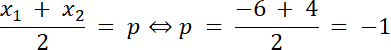 Wartość współrzędnej x wierzchołka funkcji p wyznacz, ze średniej arytmetycznej punktów symetrycznych. Następnie ze wzoru na wierzchołek paraboli wyznacz zależność między współczynnikami a i b. Zapisz wzór funkcji f w postaci kanonicznej i postawiamy do niego punkt (4, 15), aby wyznaczyć wartość współczynnika a, potem b, a na koniec, wstawiając punkt (6, 15) do wzoru funkcji w postaci ogólnej, wyznacz wartość współczynnika c i zapisz wzór funkcji kwadratowej w postaci ogólnej z wyliczonymi wartościami liczbowymi współczynników a, b, c.