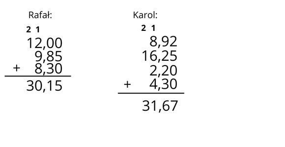 Oblicz, ile każdy chłopiec zapłacił za zakupy i porównaj kwoty – odpowiedz, kto zapłacił więcej.