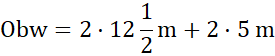 Aby obliczyć obwód trawnika, musisz dodać do siebie wszystkie jego boki. Długość krótszego boku otrzymasz mnożąc dłuższy bok przez