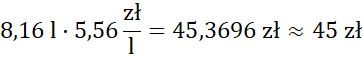 Odpowiedź: Paliwo będzie kosztowało około 45 złotych.