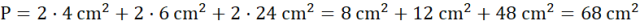 Aby otrzymać pole pierwszego prostopadłościanu, musisz pomnożyć pole podanych ścian przez ich ilość i dodać do siebie wyniki. Pole drugiej bryły wyliczysz, mnożąc podane powierzchnie przez 2, ponieważ w prostopadłościanie ściany leżące naprzeciwko siebie są takie same. Porównaj pola. Na koniec wykonaj odejmowanie – otrzymasz różnicę pól.