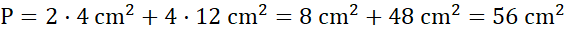 Odpowiedź: Większe pole powierzchni ma prostopadłościan B, o 12 cm2.