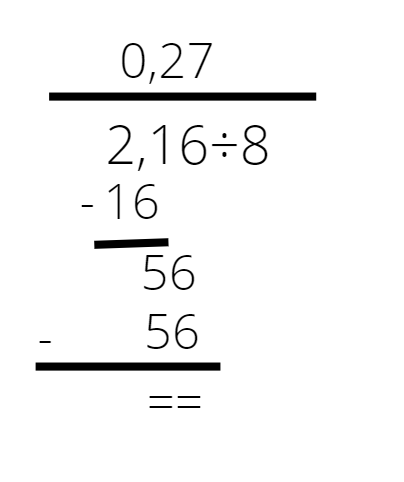 Dzielenie pisemne wykonujemy tak samo, jak w przypadku liczb naturalnych, Jedyna różnica to taka, że w zapisie wyniku przecinek umieszczamy nad przecinkiem. Najpierw wykonaj działanie pisemne tak, jak na liczbach naturalnych, po skończeniu wstaw brakujące przecinki.