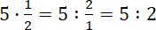 jako iloczyn liczby naturalnej (5) i ułamka prostego