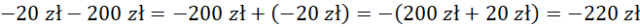 Najpierw policz, ile razem pieniędzy wypłacił pan Józef. Następnie odejmij je od początkowego stanu konta. Debet oznacza ujemny stan konta. Dodawanie liczb ujemnych zamień na dodawanie ich przeciwieństw poprzedzone znakiem minus.