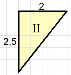 Figura II to trójkąt. Zmierz jego podstawę i wysokość, aby obliczyć pole ze wzoru