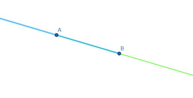 Narysuj punkty A i B i zaznacz na zielono półprostą AB, a półprostą BA na niebesko. Napisz, jaka figura powstała, przez oznaczenia dwoma kolorami.