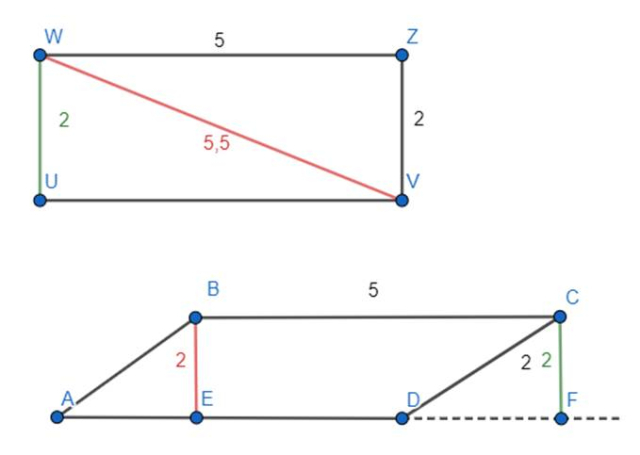 Narysuj dwa różne równoległoboki, którego boki będą wynosić 2 cm i 5 cm, a następnie poprowadź i zmierz wysokości w każdym z nich.