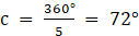 Miara kąta c to piąta część kąta pełnego, gdyż jest to kąt środkowy okręgu opisanego na pięciokącie foremnym, oparty na dwóch najbliższych wierzchołkach. Kąt ten wynosi