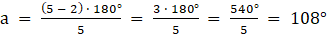 Miara kąta a, czyli kąta wewnętrznego pięciokąta foremnego to