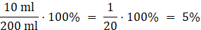 Następnie oblicz, jaki procent liczby 200 ml stanowi 10 ml.