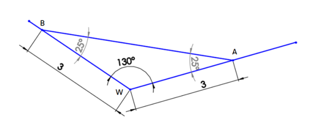 - zaznacz punkt A na ramieniu w dowolnej odległości od punktu W