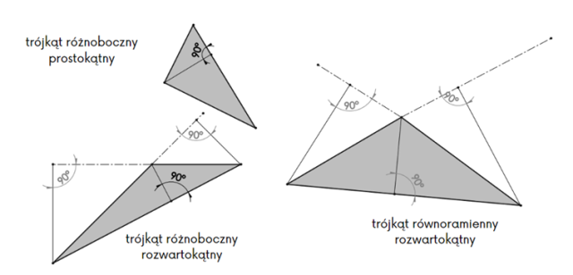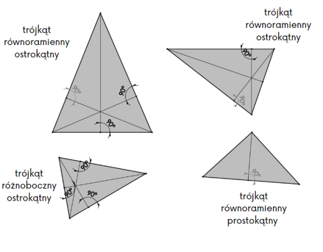 Podaj nazwy trójkątów ze względu na boki i kąty, a następnie narysuj ich wszystkie wysokości.