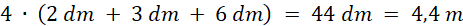 Na wykonanie modelu potrzebny jest drut, który będzie długości sumy wszystkich krawędzi, czyli: