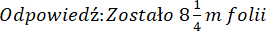 Zapisz obliczenia w zeszycie i oblicz, ile metrów folii zostało.