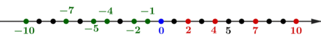 W tym zadaniu musisz zapisać podane liczby na osi liczbowej, a ujemne zaznaczyć na zielono.
