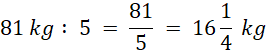 Oblicz, ile kg jabłek jest w każdej skrzyni, jeśli jest ich 81kg razem i zostały rozłożone po równo do 5 skrzyń.