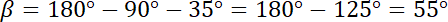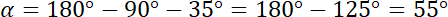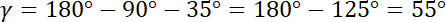 Zauważ, dźwigar został podzielony na trójkąty. Suma miar katów w trójkącie to 180 stopni. Aby otrzymać miarę kąta alfa i beta, odejmij od 180 stopni kąt prosty i kąt 35°. Przyjrzyj się trójkątowi z kątem γ: trzeci kąt ma miarę 90°, ponieważ jest on przyległy do kąta prostego. Na koniec zauważ, że kąty α, γ i δ tworzą kąt półpełny, czyli 180 stopni. Odejmij od niego miary kątów alfa i delta – otrzymasz miarę kąta delta.