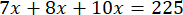 W tym zadaniu rozłóż liczbę 225 na trzy składniki będące w stosunku 7 : 8 : 10.