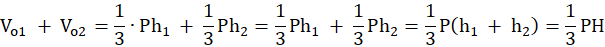 Suma wysokości dwóch ostrosłupów to wysokość całego graniastosłupa. Po obliczeniu objętości graniastosłupa