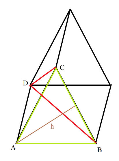 W tym zadaniu musisz obliczyć, pod jakimi kątami są do siebie nachylone ściany boczne graniastosłupa, wiedząc, że wysokość graniastosłupa prostego trójkątnego ma długość 1, a dwie przekątne ścian bocznych poprowadzone z tego samego wierzchołka mają długość
