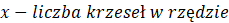 Najpierw opisz zmiennymi liczbę krzeseł w rzędzie i liczbę rzędów, rozwiąż układ równań z równań, które zostały ułożone na podstawie informacji zawartych w poleceniu, a następnie zapisz rozwiązanie. Było 17 rzędów krzeseł, a w każdym rzędzie po 40 krzeseł.