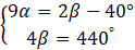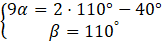 Narysuj rysunek, zaznacz na nim miary kątów danego czworokąta, a następnie ułóż układ równań, złożony z dwóch równań, jedno, które wynika z własności miar kątów w czworokącie, a drugie z informacji z treści zadania. Rozwiąż ten układ równań i zapisz miary kątów. Miary tych kątów to: