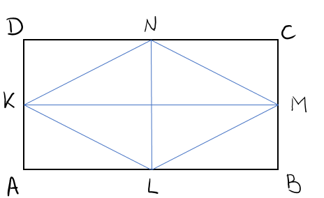 Oblicz pole prostokąta ABCD jako suma dwóch pól rombu KLMN.