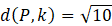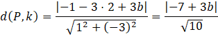 Najpierw wyznacz współczynnik kierunkowy prostej k, skorzystaj z własności prostopadłości prostych. Następnie skorzystaj ze wzoru na odległość punktu od prostej