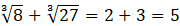 Oblicz każdy z podanych równań. Na początek musisz obliczyć pierwiastki. Pierwiastkowanie to odwrotność potęgowania. Pierwiastek stopnia trzeciego to odwrotność potęgowania do sześcianu. W tym zadaniu szukaj liczby, która podniesiona do potęgi 3 daje liczbę pod pierwiastkiem. Ta liczba jest wynikiem.