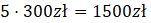 Oblicz stan konta pani Zofii po zakupach, jeśli pięciokrotnie zapłaciła za zakupy 300 zł, a na koncie miała 800 zł.