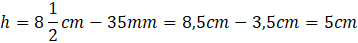 Oblicz pole rombu o boku długości i wysokości o 35 mm od niego krótszej.