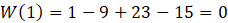 1 | 1 | 1 – 9 = -8 | -8 + 23 = 15 | 15 – 15 = 0 |