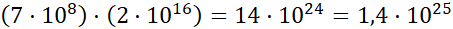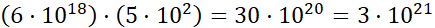 Zwróć uwagę, że mnożenie jest przemienne – możemy osobno pomnożyć pierwsze czynniki i zsumować wykładniki przy liczbie 10. Przy dzieleniu możemy podzielić pierwsze czynniki, a potem odjąć wykładniki przy potęgach 10.