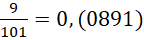 Zamień ułamek zwykły na okresowy, dzieląc pisemnie 9 przez 101. Otrzymasz, że: