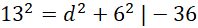 Narysuj cięciwę AB i promienie wychodzące ze środka O do jej końców. W ten sposób powstaje trójkąt równoramienny AOB o promieniu r równym 13 – wyliczony z pola. Odległość punktu O od cięciwy to wysokość tego trójkąta, obliczymy ją z twierdzenia Pitagorasa.