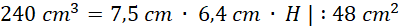 Oblicz, jaka powinna być wysokość tego naczynia, jeśli ma ono zmieścić 240 ml wody.