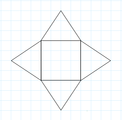 Dokończ rysowanie pozostałych ścian, aby powstała siatka ostrosłupa prawidłowego.