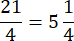21 : 4 = 5 reszta 1