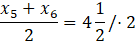 Medianą będzie średnia arytmetyczna piątej i szóstej liczby, zatem możesz zapisać: