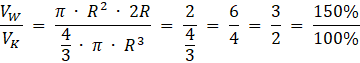 Objętość walca jest większa od objętości kuli o 50%.