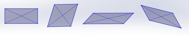 Dorysuj przekątne. Pokoloruj równoległoboki, w których przekątne są pod kątem prostym. Ustal co to za rodzaje równoległoboków.