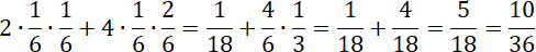 Dwa zdarzenia polegają na wylosowaniu jednej konkretnej liczby w obu rzutach, a 4 zdarzenia polegają na wylosowaniu jednej z 6 i 2 z 6 w drugim rzucie.