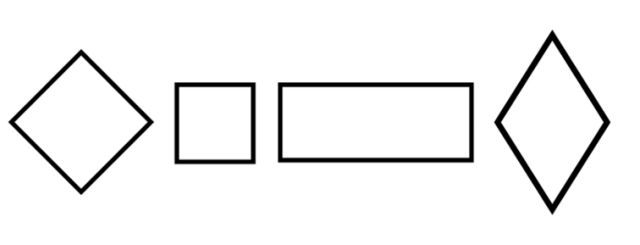 Przykładowe czworokąty: romb, kwadrat, prostokąt, deltoid.