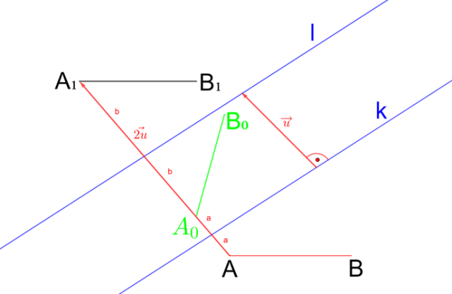 . Na koniec musisz wykazać, że za pomocą przesunięcia odcinka AB o wektor prostopadły do prostych k i l, będący dwa razy dłuższy niż wynosi odległość między tymi prostymi, da się uzyskać odcinek
