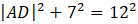 Policz długość |AD| z twierdzenia Pitagorasa (suma kwadratów przyprostokątnych jest równa kwadratowi przeciwprostokątnej), by móc obliczyć z tego samego twierdzenia długość |AB|.